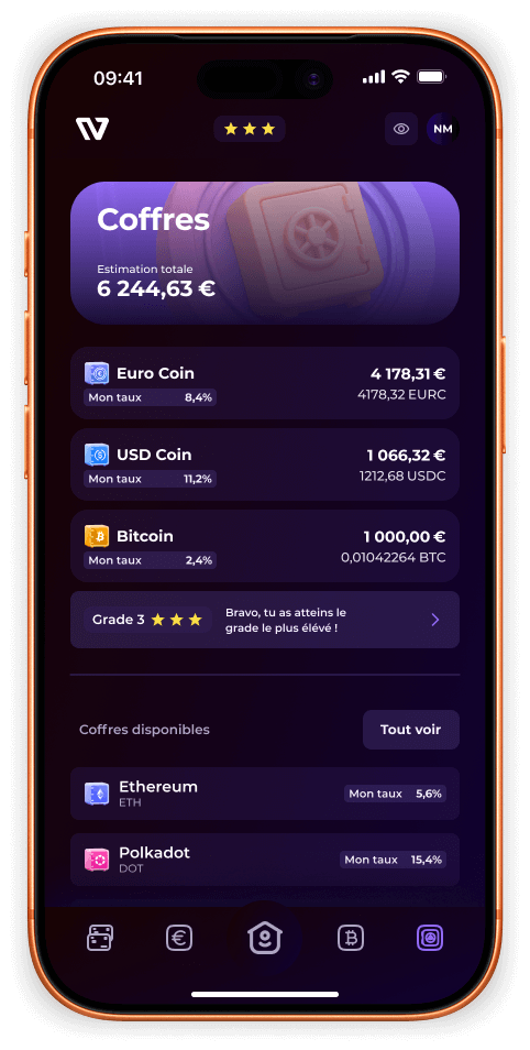 Tu peux placer certains crypto-actifs dans un coffre qui génère un rendement annuel.